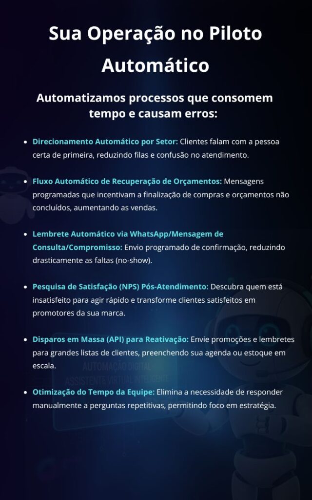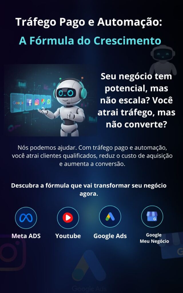 Criamos campanhas em Google, Meta (Facebook/Instagram) e YouTube, enquanto automações qualificam leads, lembram clientes e agilizam o atendimento, aumentando suas vendas.